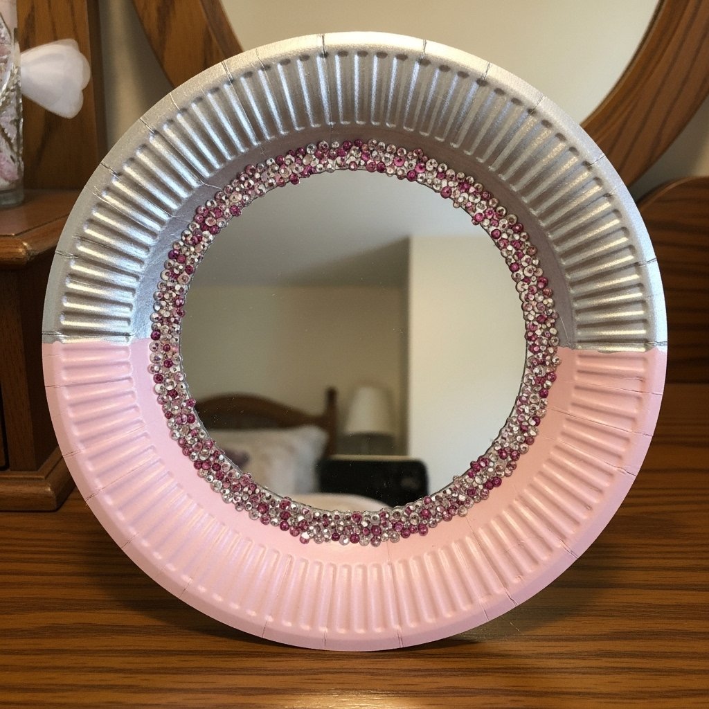 You can create a stunning mirror frame using paper plates in minutes. Cut the center of the plate and attach a small round mirror in the middle. Paint the outer rim in metallic or pastel shades to match your room. Add small beads or gems around the border for extra sparkle. This paper plate mirror frame makes a stylish and affordable decor piece for your vanity or bedroom.