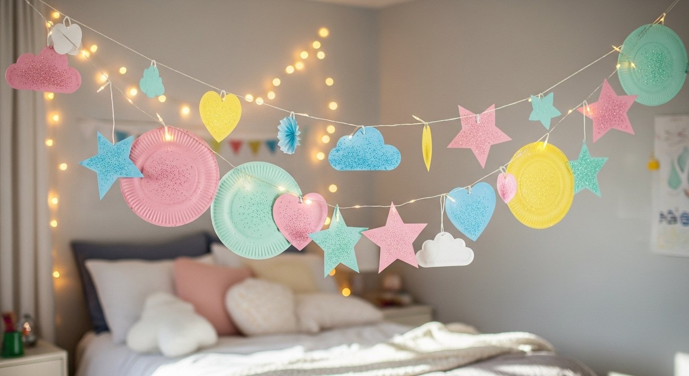 Paper plate garlands are a simple and cute decoration for any room. Cut the plates into different shapes like hearts, stars, or circles. Paint them in your favorite colors and punch holes at the top. Thread a string through the holes and hang the garland across your wall or window. This easy DIY idea adds a fun and festive touch to your room.