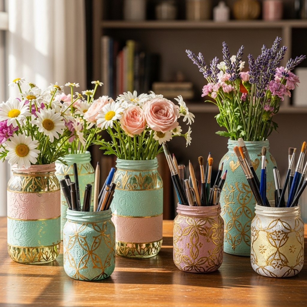 Paper towel vase and jar decor is perfect for enhancing everyday containers. Paper towels can be wrapped around jars and shaped into patterns or textures. After painting, the jars look elegant and decorative. These can be used as flower vases, pen holders, or candle stands. It’s a budget-friendly way to reuse and decorate household items.