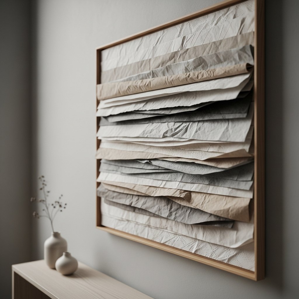 DIY paper towel abstract art is ideal for modern and minimalist room decor. Paper towels can be layered freely to create unique textures and patterns. Once painted, the artwork looks professional and stylish. This decor idea allows full creative freedom and customization. It works well as wall art or framed decor pieces.