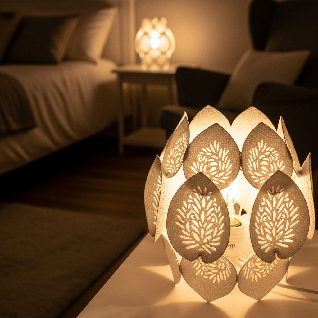 Paper towel DIY lampshade decor adds a soft and cozy vibe to your room lighting. Paper towels can be cut into patterns or folded into floral shapes and attached to lampshades. When the light is turned on, the designs create beautiful shadows and textures. This decor idea works best with LED bulbs for safety. It’s an easy way to upgrade old lamps without replacing them.