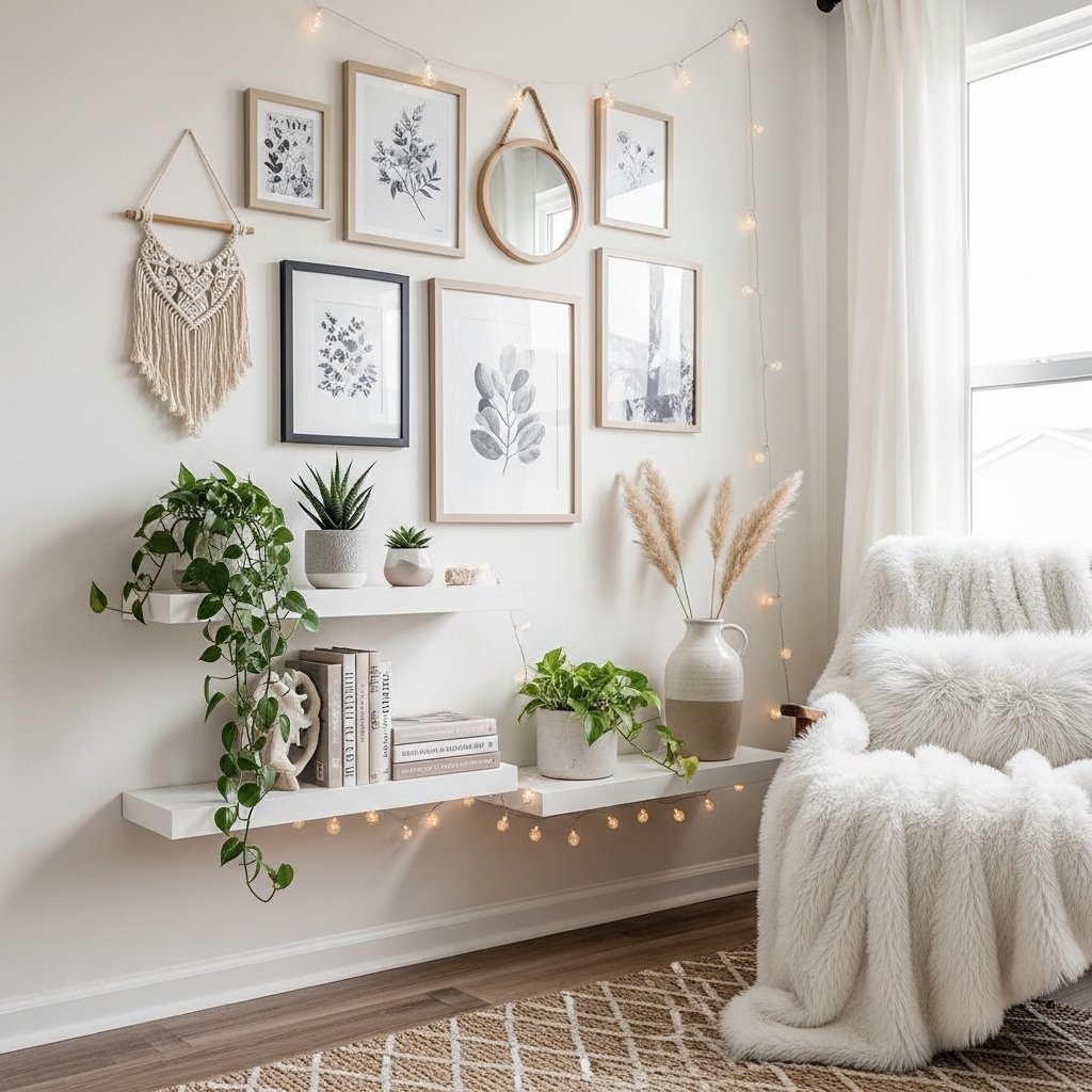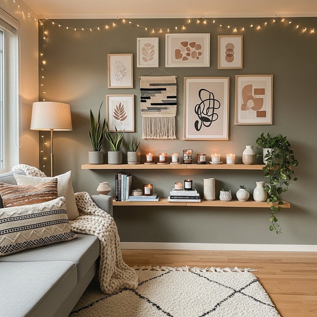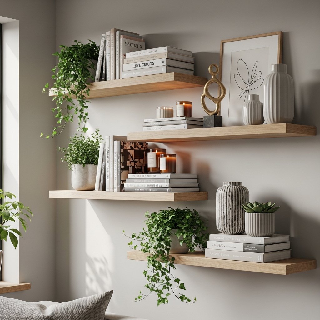 Floating shelves are a popular DIY decor idea that combines functionality with design. You can install simple wooden shelves to display books, plants, candles, or small decorative pieces. This not only saves floor space but also creates a visually appealing focal point on your wall. In many USA homes, floating shelves are styled with a mix of modern and rustic elements. They are perfect for organizing clutter while adding personality to your room.
