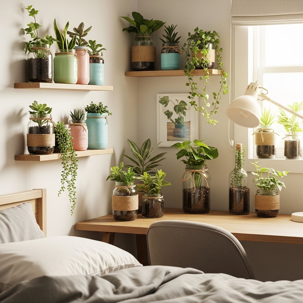Adding greenery is a great way to brighten small bedrooms for teen girls. DIY planters made from jars, cans, or bottles keep costs low. Fake plants are also a good option for low maintenance decor. Plants add freshness and calm without overwhelming the room. This decor idea works well with almost any bedroom theme.
