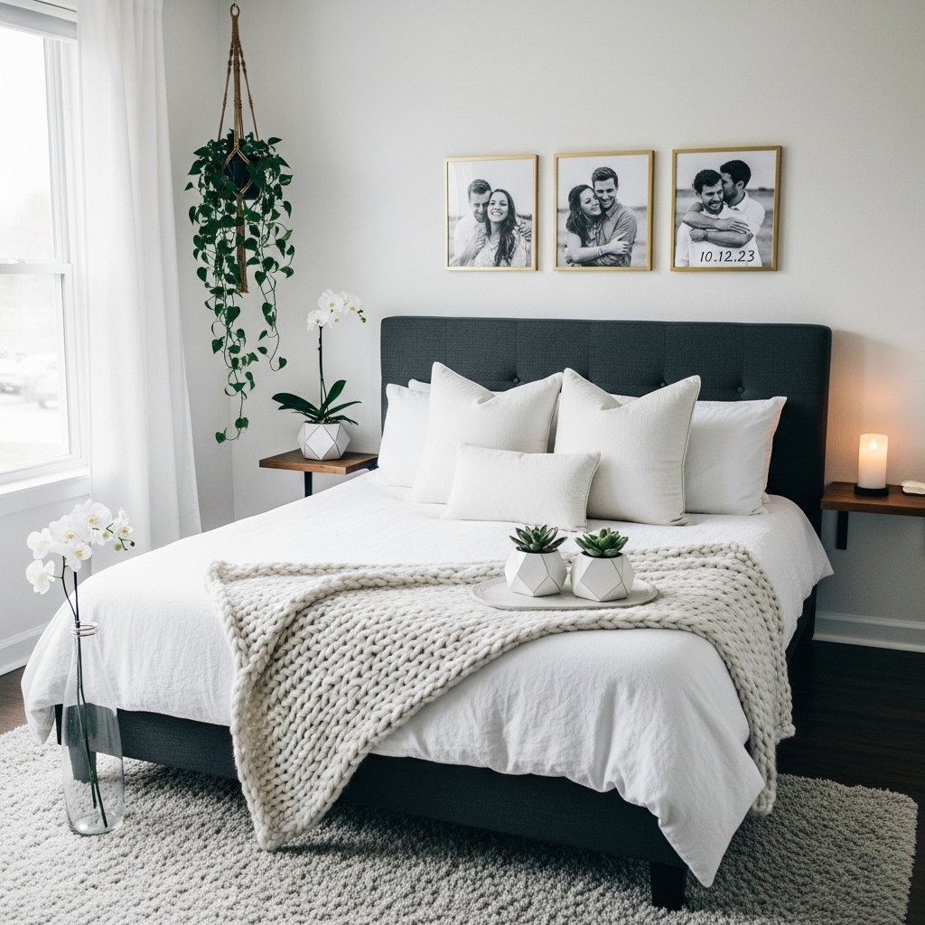 Adding statement wall art is an effective way to personalize a small bedroom without overwhelming it. A large abstract painting, framed photography, or textured wall hanging can draw the eye and add character. For couples, incorporating meaningful artwork like travel memories or joint hobbies strengthens the intimate feel. Keep frames minimal and colors in harmony with the overall palette to maintain a modern look. Statement walls create visual interest while preserving cozy proportions.