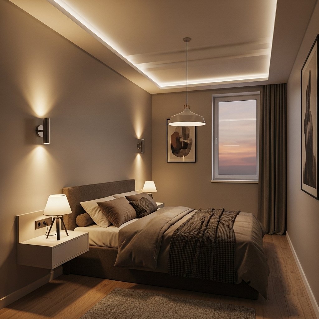 Proper lighting transforms small bedrooms into cozy modern retreats. Use a mix of ambient, task, and accent lighting for functionality and atmosphere. Wall-mounted sconces or pendant lights save floor space while providing soft illumination. Warm LED bulbs create a relaxing vibe, perfect for couples winding down together. Adjustable lighting near the bed allows personalized reading or mood settings without cluttering surfaces.