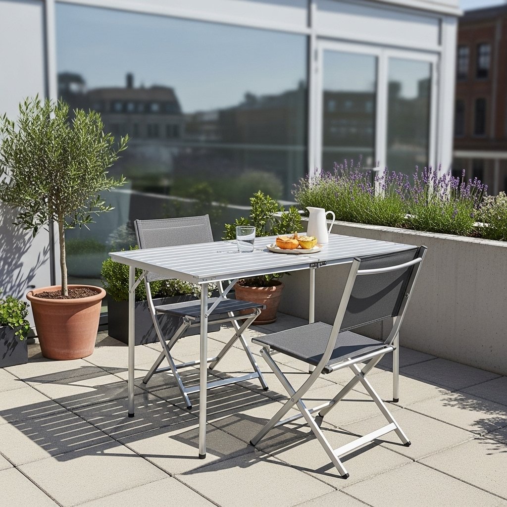 Foldable furniture is ideal for maximizing space in a small patio interior. Chairs and tables that can be stored away when not in use help maintain openness. This allows you to use the area for different purposes throughout the day. It is especially useful for multifunctional patios. Practical and space-saving, this idea is perfect for modern compact living.
