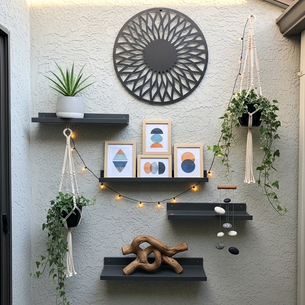 Wall-mounted decor is a great way to enhance a small patio interior without consuming floor space. You can add shelves, artwork, or decorative panels to personalize the area. These elements create visual interest and depth on plain walls. Choose weather-resistant materials to ensure durability outdoors. This approach helps make your patio feel more stylish and complete.