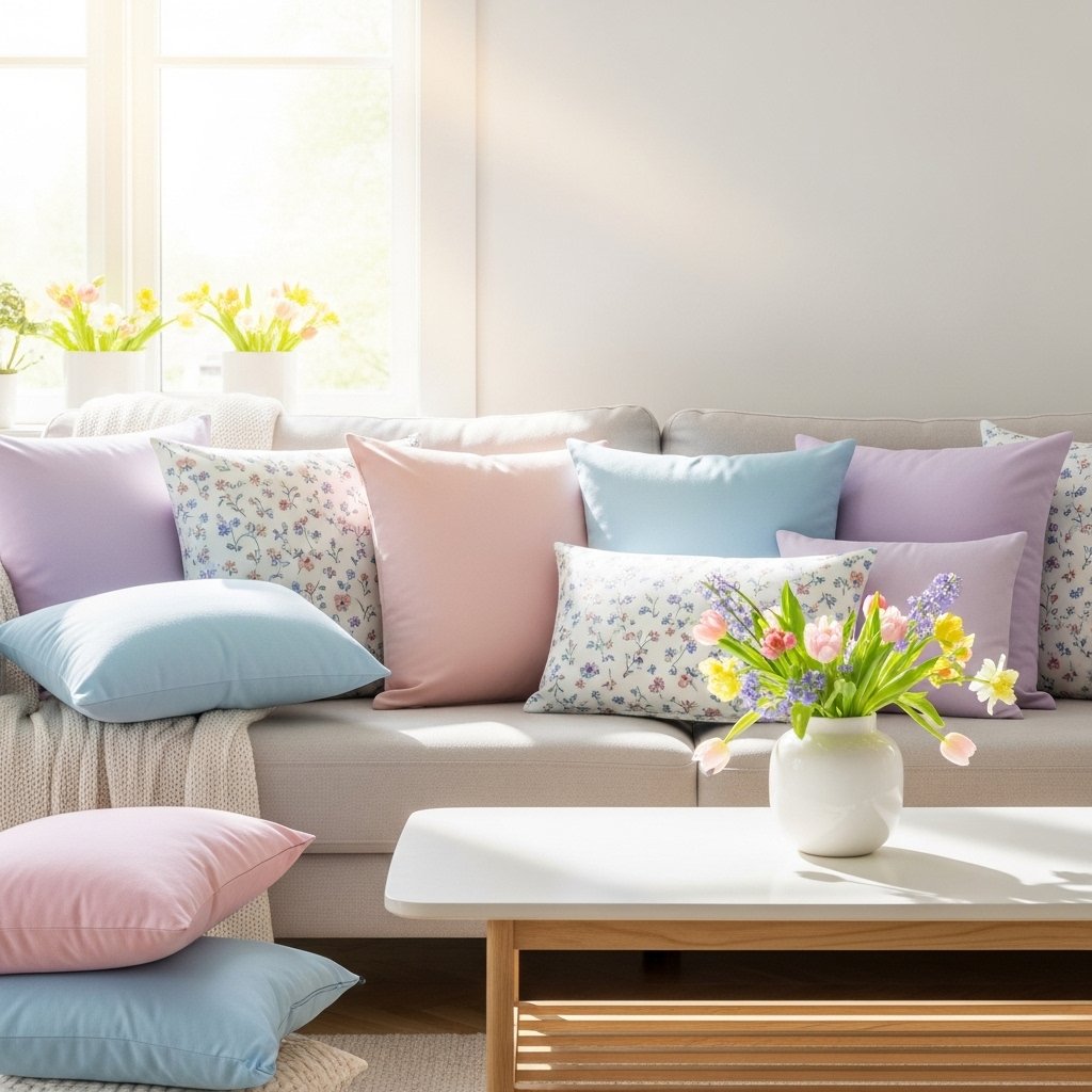 Pastel throw pillows are a simple way to transform your living room for spring. You can create DIY pillow covers using lightweight fabric in soft seasonal colors like lavender, sky blue, or blush pink. Adding floral prints or embroidered designs makes the pillows even more decorative. These pillows instantly brighten sofas, chairs, and beds without requiring a major home makeover. It is an easy decorating idea that adds comfort and seasonal charm to your space.