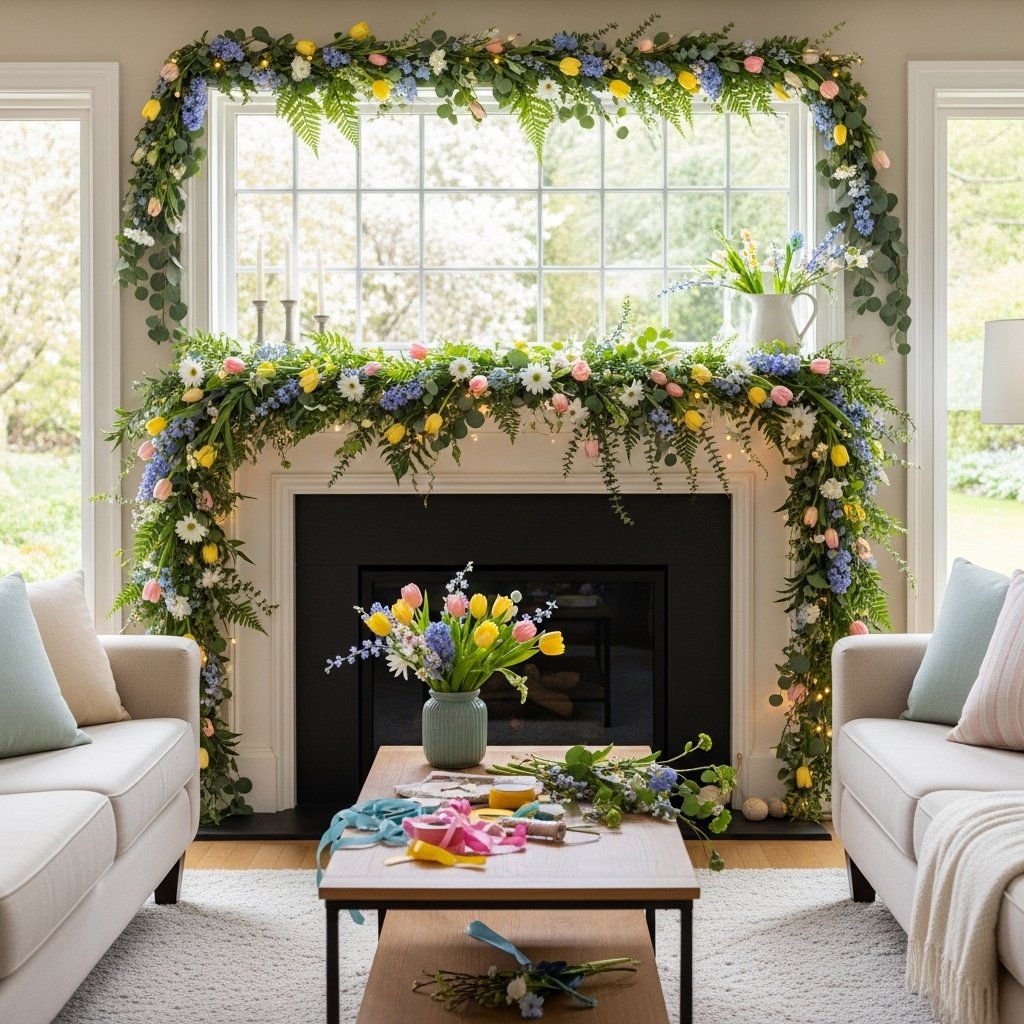 A spring garland is a versatile decoration that can be used throughout the home. You can make one using artificial flowers, leaves, fabric pieces, or even pastel-colored paper shapes. String them together to create a decorative garland for mantels, staircases, or windows. This project is quick to make and instantly adds a festive seasonal vibe. A DIY garland is also perfect for decorating during spring parties or family gatherings.