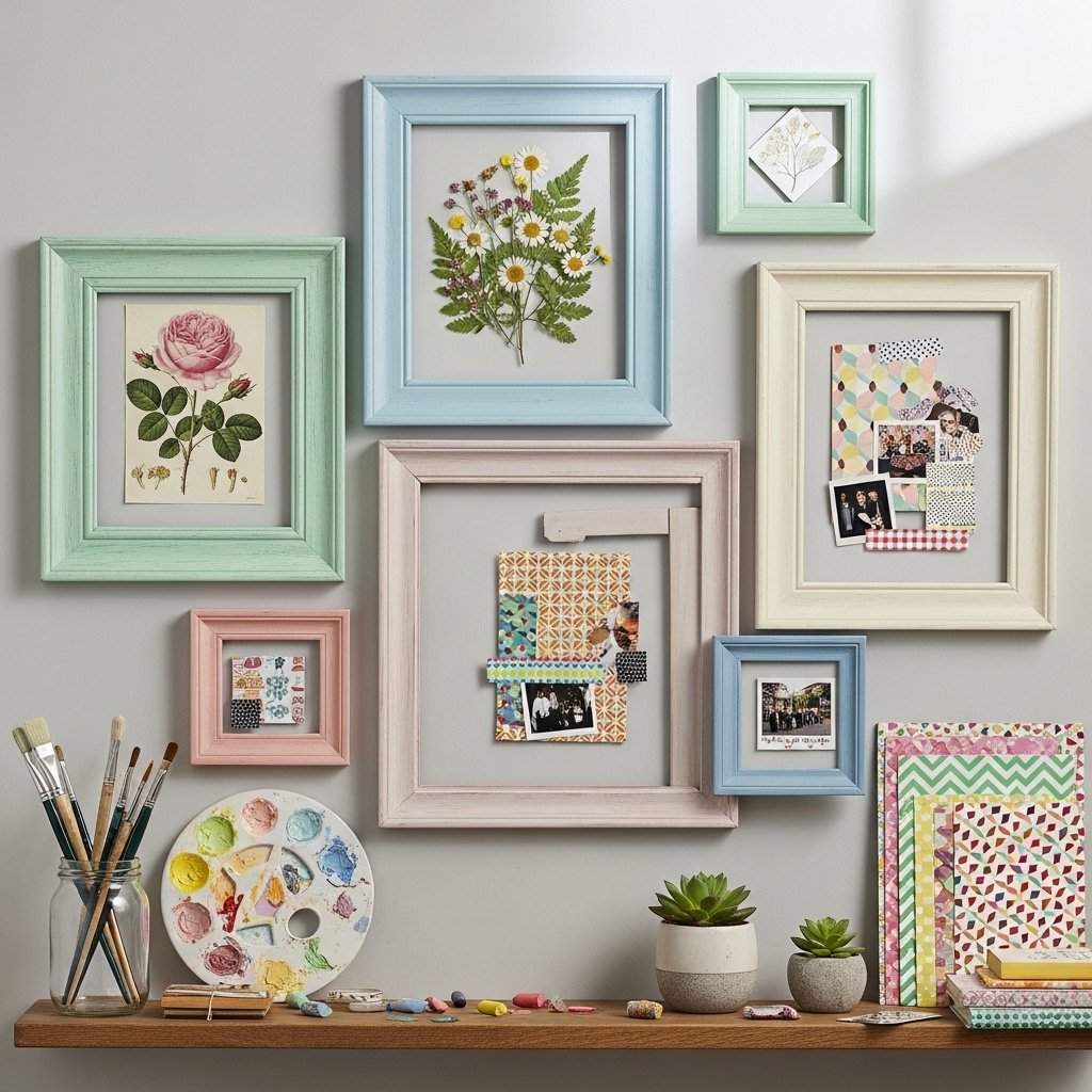 Transform old picture frames into spring-themed wall art collages. Paint the frames in pastel shades and fill them with prints, pressed flowers, or patterned paper. This adds texture, color, and personality to your walls. Collages allow you to mix sizes, shapes, and mediums for a dynamic look. It’s a great way to reuse materials and create a personalized décor statement.