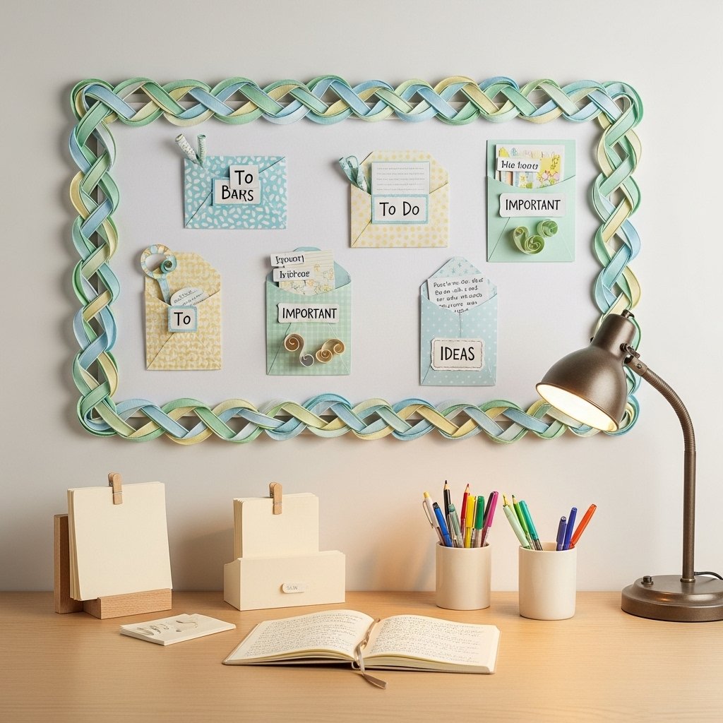 A paper-decorated bulletin board helps keep your study room organized and visually appealing. You can design paper borders, headers, and labels using themed colors or patterns. Adding paper pockets or envelopes to the board creates extra storage for notes and reminders. This idea combines decoration with functionality, making it ideal for daily use. A well-decorated paper bulletin board makes planning and studying more enjoyable.