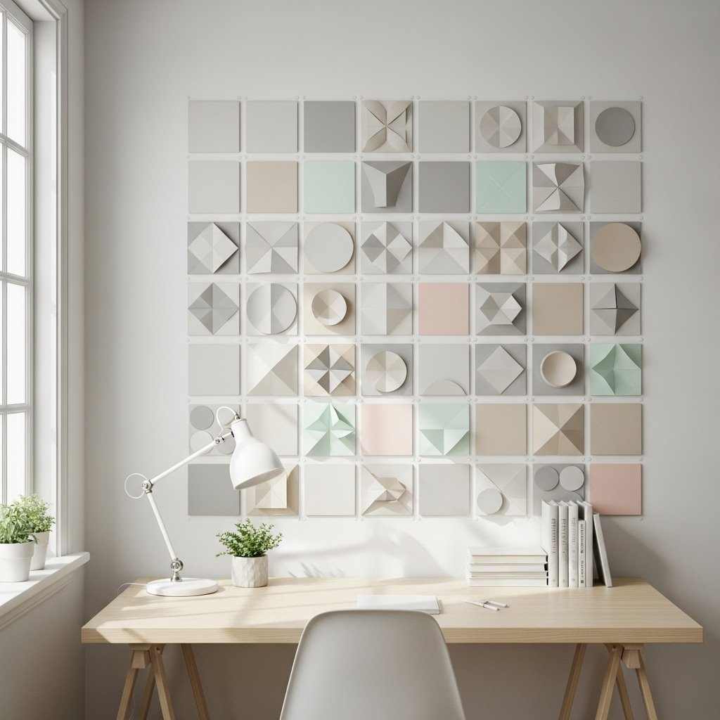 Creating a paper wall grid or pattern is a trendy study room decor idea. You can arrange paper squares, circles, or triangles in a repeating design on the wall. This adds structure and visual balance to your study area without distracting from focus. Neutral or pastel colors work best for a calm learning environment. Paper wall patterns are easy to install and remove, making them renter-friendly.