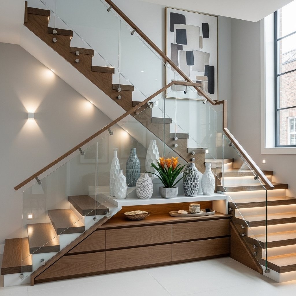 Staircases are a defining feature of townhomes and can be used as a design statement. Open risers, glass railings, or sleek wooden designs create a modern and elegant look. Adding lighting along the stairs improves safety while enhancing visual appeal. The area beneath the staircase can be utilized for storage or décor. A thoughtfully designed staircase adds character and style to the home.