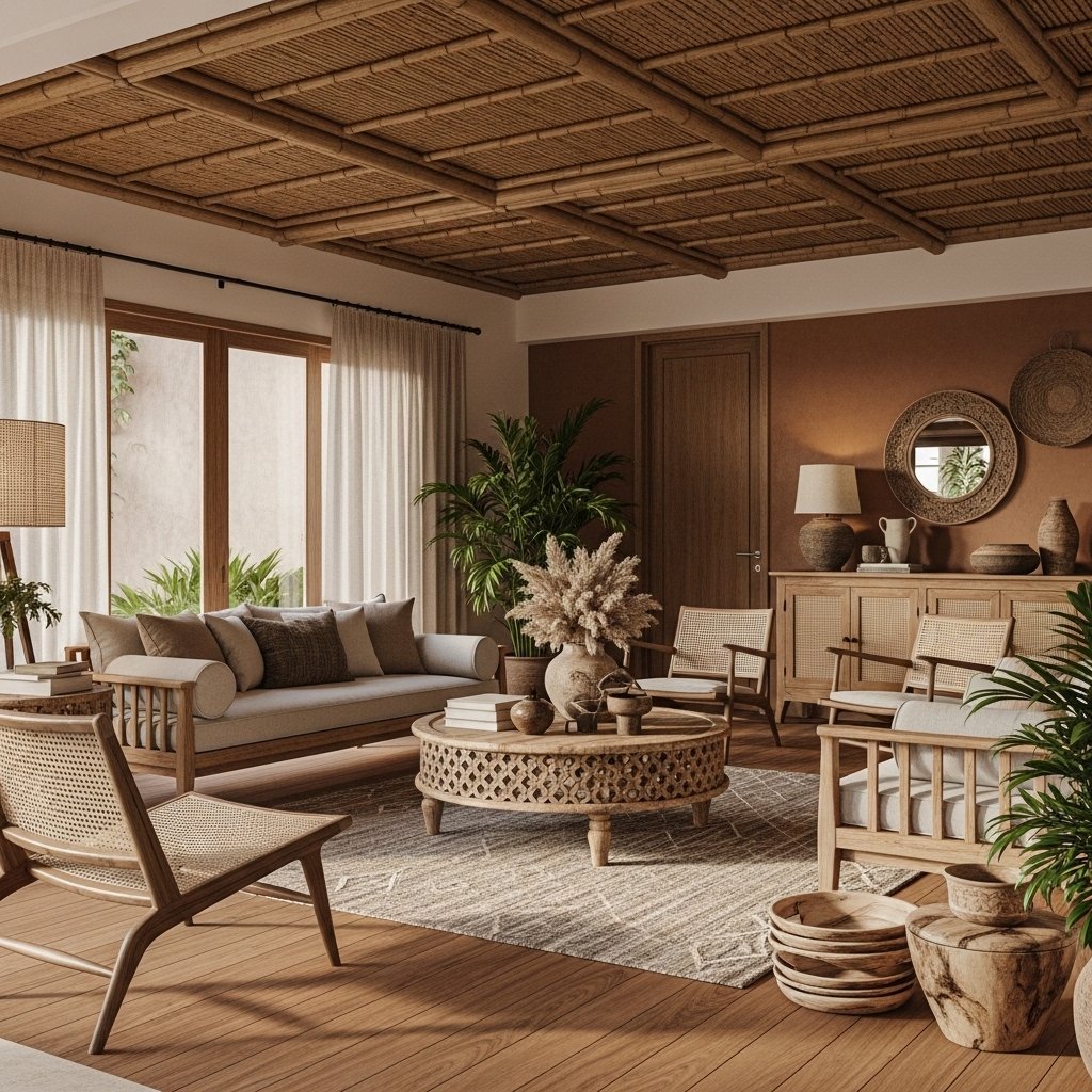 Bamboo is a versatile and eco-friendly material often used in tropical houses interior design. It can be used for furniture, decor, or even wall accents. Bamboo adds a natural and rustic charm that complements other organic elements. Using sustainable materials supports environmentally conscious living. This approach ensures your home is both stylish and responsible.