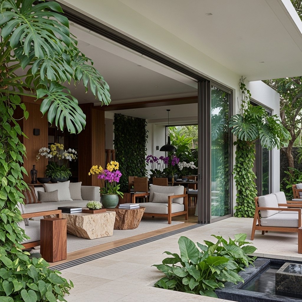 Lush greenery is at the heart of tropical houses interior design. Adding plants like palm trees, monstera, and ferns instantly brings life into the space. These plants not only improve aesthetics but also enhance air quality. Placing them in corners, near windows, or as centerpieces creates a refreshing atmosphere. The presence of greenery makes the home feel vibrant and naturally beautiful.