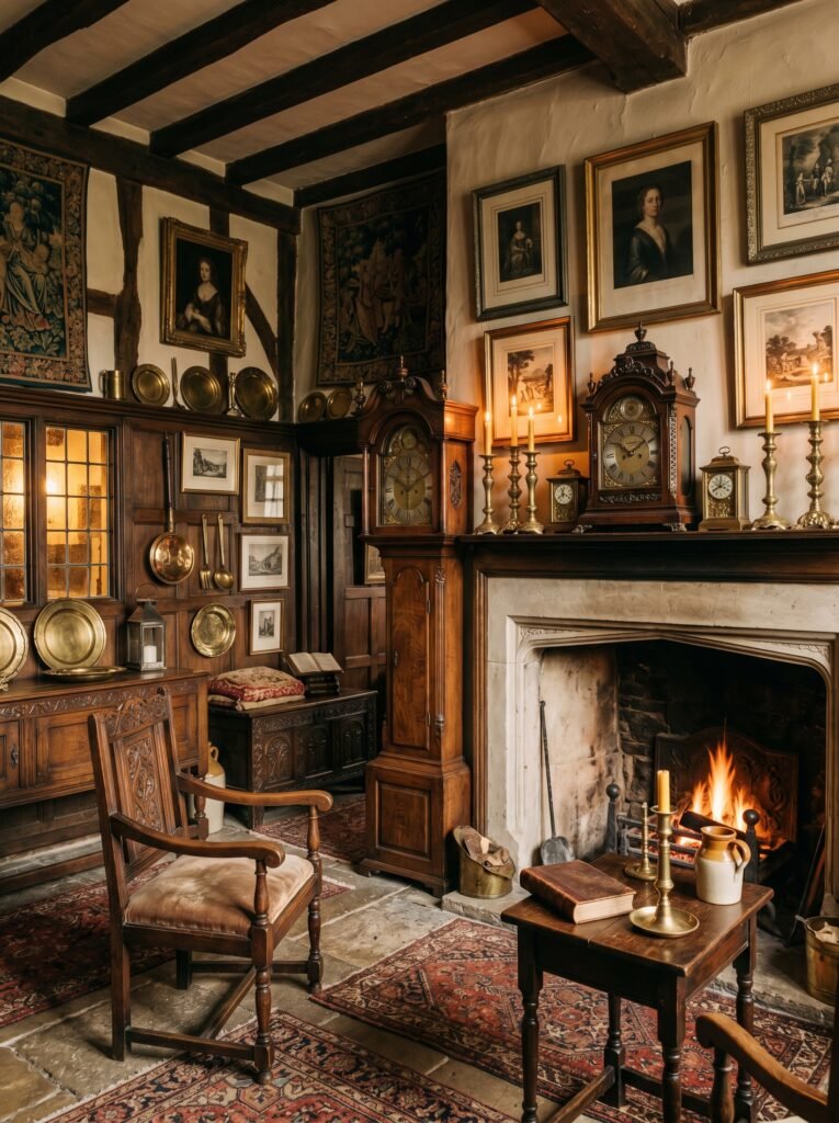 Accessories play an important role in completing a Tudor interior. Antique clocks, candle holders, and vintage-style artwork are commonly used. These decorative items reinforce the historical theme of the space. Even small details like brass handles or carved picture frames make a difference. The goal is to create a lived-in, timeless environment full of character.
