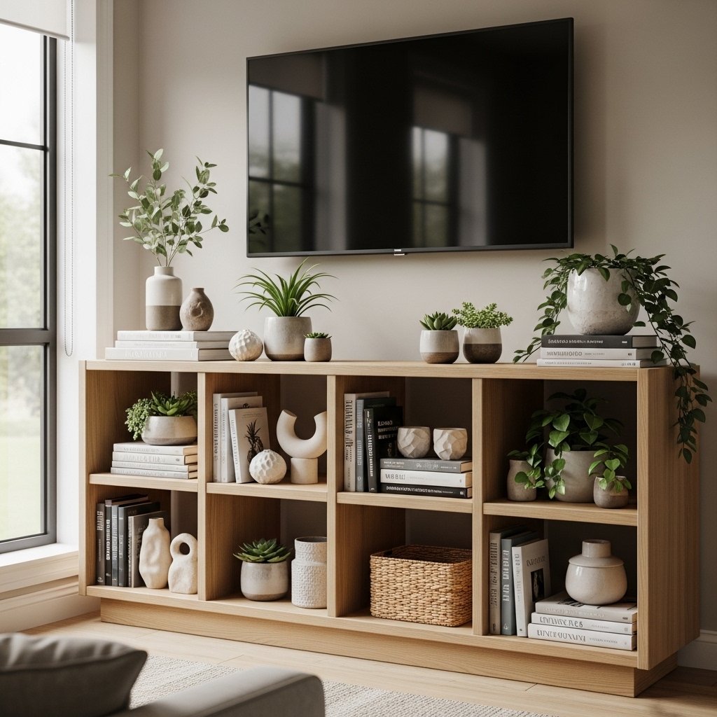 1. Keep it Clean – Dust shelves, screens, and decor regularly to maintain a neat look.