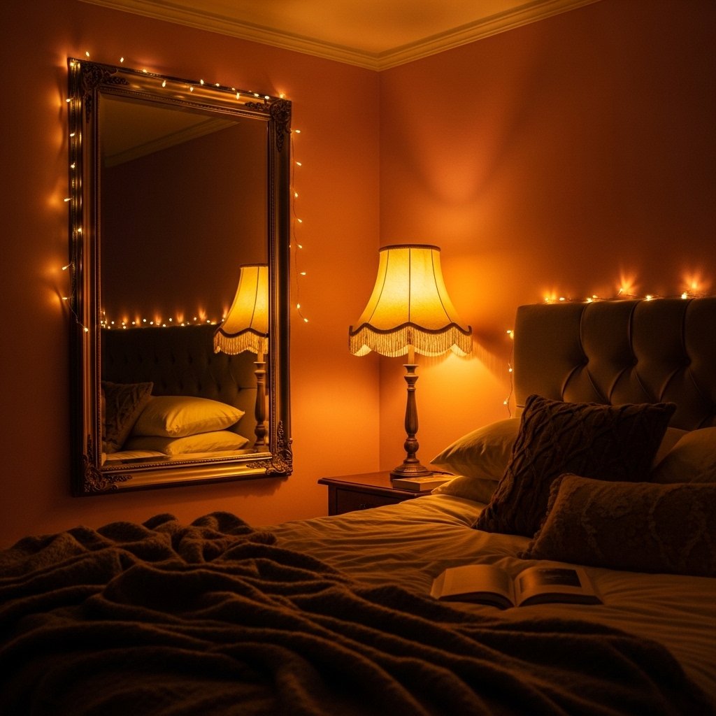 Lighting plays a huge role in creating a vintage grunge pink vibe. Warm fairy lights, vintage lamps, and soft bulbs make the space feel intimate and dreamy. Avoid bright white lighting because it removes the cozy retro atmosphere. String lights around mirrors, headboards, or photo walls to create glowing focal points. The soft golden light enhances pink tones and makes the room feel warm and inviting.