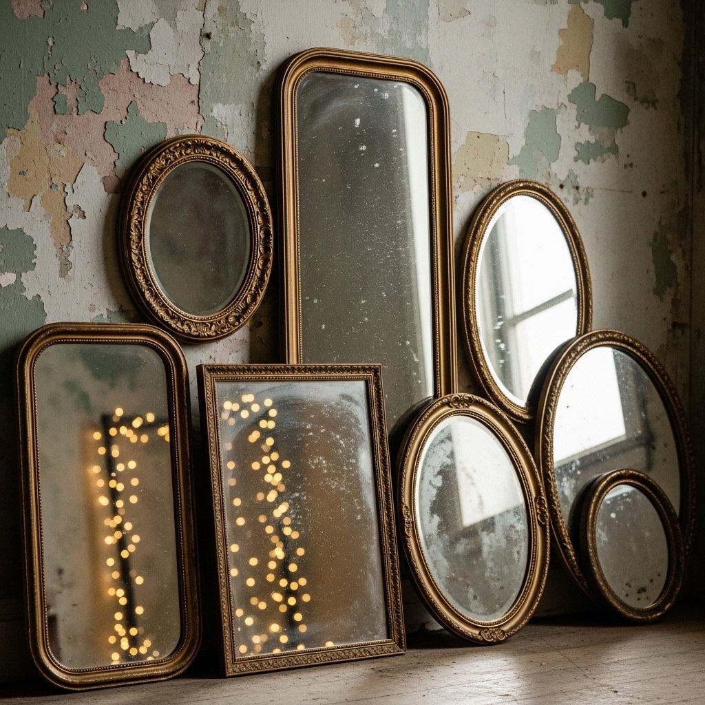 Antique or thrifted mirrors are essential pieces in a grunge pink room design. Choose gold, bronze, or slightly worn frames to maintain authenticity instead of shiny modern finishes. Leaning large mirrors against the wall gives a relaxed aesthetic rather than formal decor. Small decorative mirrors arranged gallery-style also work beautifully. Reflections combined with warm lighting make the room feel larger and more nostalgic.