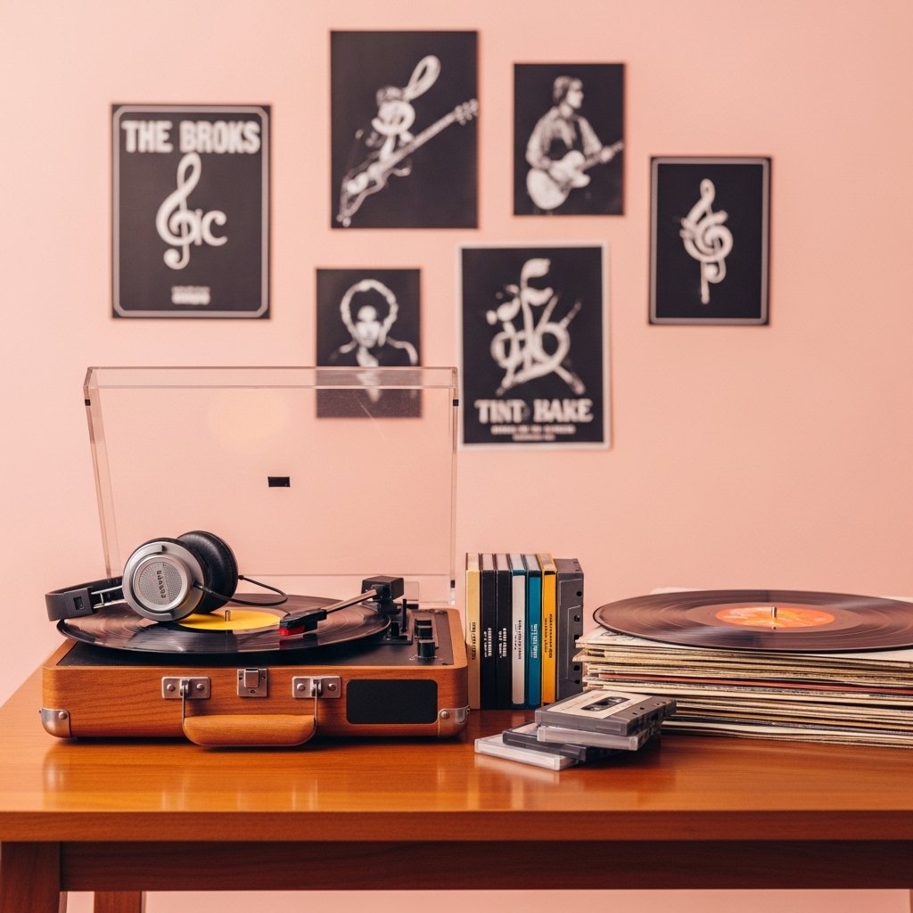 A vintage music corner strengthens the nostalgic atmosphere of a grunge pink bedroom. Place a record player on a small wooden table with stacked vinyl records underneath. Add band posters, cassette tapes, and headphones to complete the aesthetic vibe. Soft pink surroundings contrast beautifully with dark retro music elements. This corner becomes both decorative and functional, perfect for relaxing evenings.