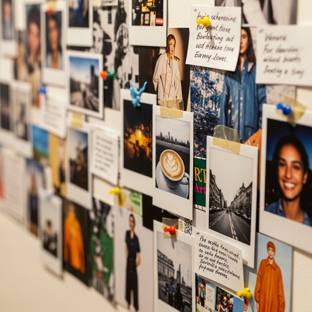 7. Gallery Wall with Polaroids and Magazine Cutouts