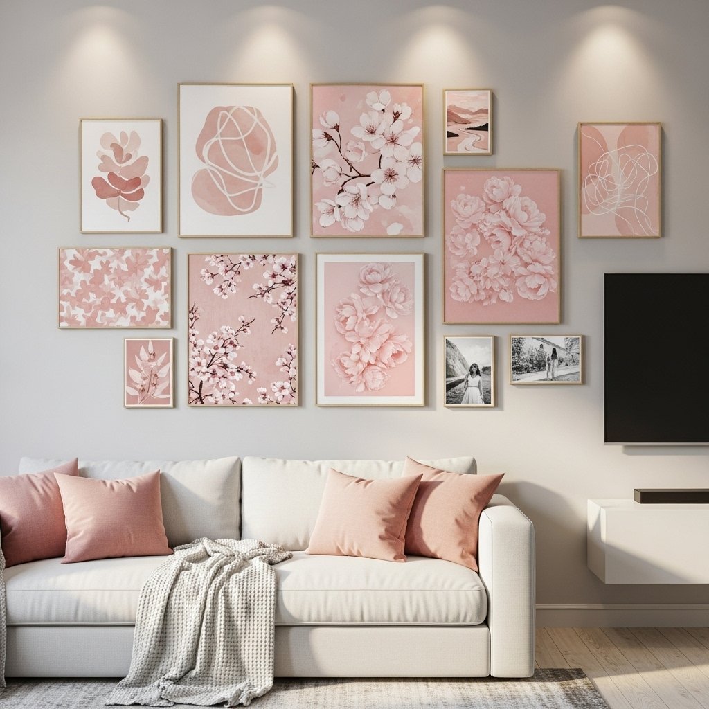 13.2. Why choose pink and white photo collages for living room wall decor❓