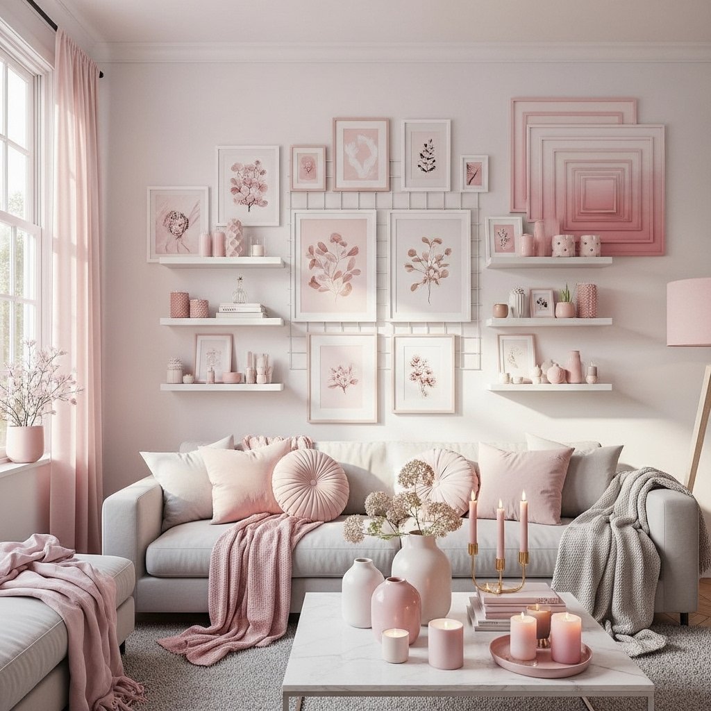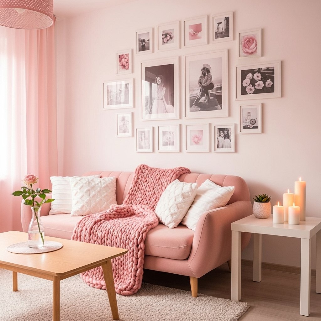 A pink and white aesthetic has become a top trend for living room wall decor, offering a soft, elegant, and inviting atmosphere. Photo collages add a personal touch, transforming blank walls into charming focal points that reflect your style and memories. Whether you prefer minimalist designs, floral inspirations, or modern geometric layouts, pink and white themes effortlessly balance warmth and sophistication. With the right arrangement, lighting, and accessories, your living room can become both cozy and visually stunning. In this guide, we share twelve creative wall decor ideas for living room photo collages in a pink and white aesthetic.