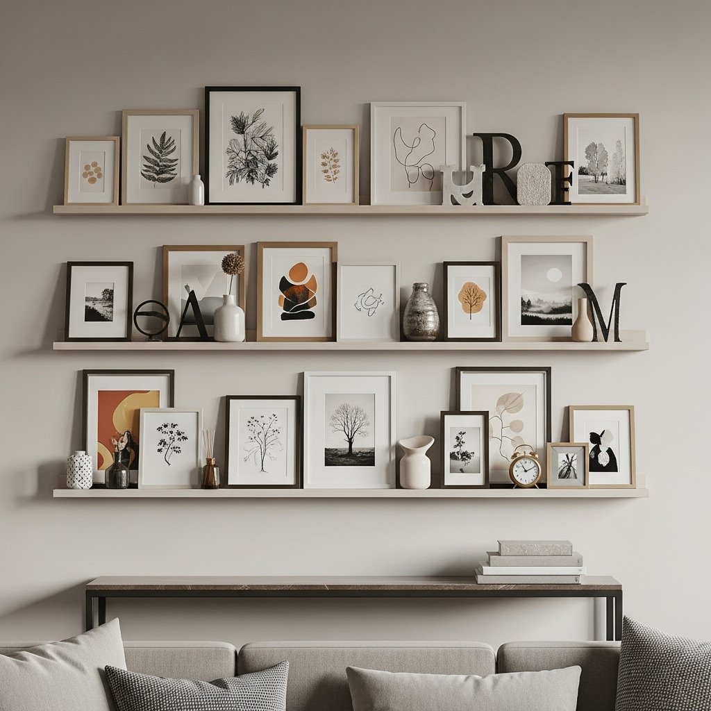 DIY wall décor is one of the most creative ways to personalize a living room while keeping it stylish and budget-friendly. Hanging pictures, books, and other unique art pieces allows you to turn blank walls into eye-catching focal points. Whether you prefer minimalistic designs, eclectic galleries, or cozy literary-inspired corners, DIY ideas give you full control over your living space. With the right combination of colors, frames, shelves, and creative arrangements, you can transform ordinary walls into conversation starters. Below are 12 inspiring DIY wall décor ideas for your living room, perfect for showcasing your personality, hobbies, and artistic flair.