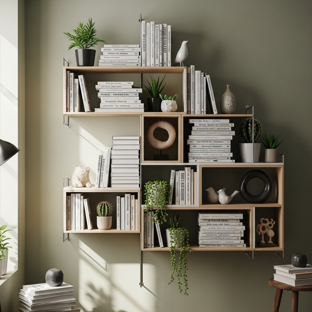 Ensure that all wall-mounted items, including shelves for books or décor, are securely installed with strong anchors or hooks to prevent accidents. Keep books and hanging items slightly away from direct sunlight and humidity, which can cause fading, warping, or damage over time. Avoid overcrowding shelves or walls to maintain a clean and balanced look. Occasionally refresh the arrangement by rotating art pieces, changing book placement, or adding small decorative accents to keep the living room lively and stylish. With careful maintenance and thoughtful organization, your wall décor will remain creative, safe, and visually appealing.