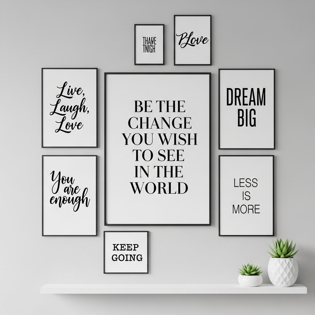 Incorporating framed quotes or typographic prints is a simple and motivational way to decorate your walls. Choose meaningful phrases, favorite lyrics, or inspirational words that reflect your personality. Typography art can be printed, painted, or even created with vinyl lettering for a DIY touch. Arrange multiple quotes in a cohesive layout or feature one large statement piece. This idea enhances your living room with positive energy and personal style.