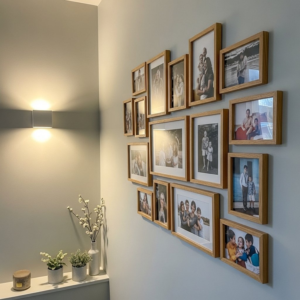 Displaying personal photographs in matching or coordinated frames adds warmth and intimacy to your living spaces. Choose photos from family vacations, celebrations, or candid moments. You can mix portrait and landscape orientations while keeping the frame style consistent for cohesion. This décor idea works well in bedrooms, living rooms, or hallways. A personal photo wall creates a meaningful and visually pleasing display that feels uniquely yours.