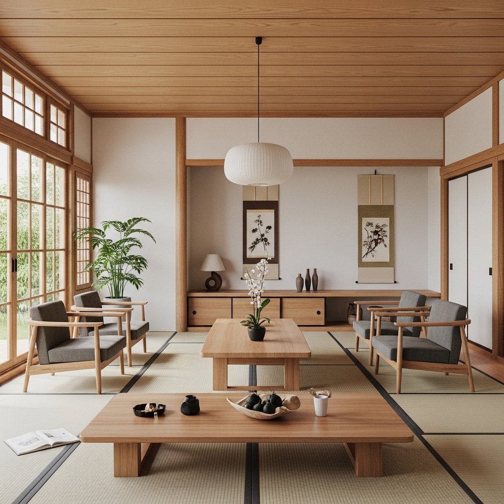 Small decorative elements inspired by Japanese culture can complete your Zen garden interior. Items like bamboo mats, ceramic tea sets, calligraphy art, or simple wall scrolls add authenticity to the space. However, these accessories should be used sparingly to maintain minimalism. Each piece should have meaning and purpose rather than being purely decorative. This thoughtful approach keeps the environment peaceful and visually balanced.