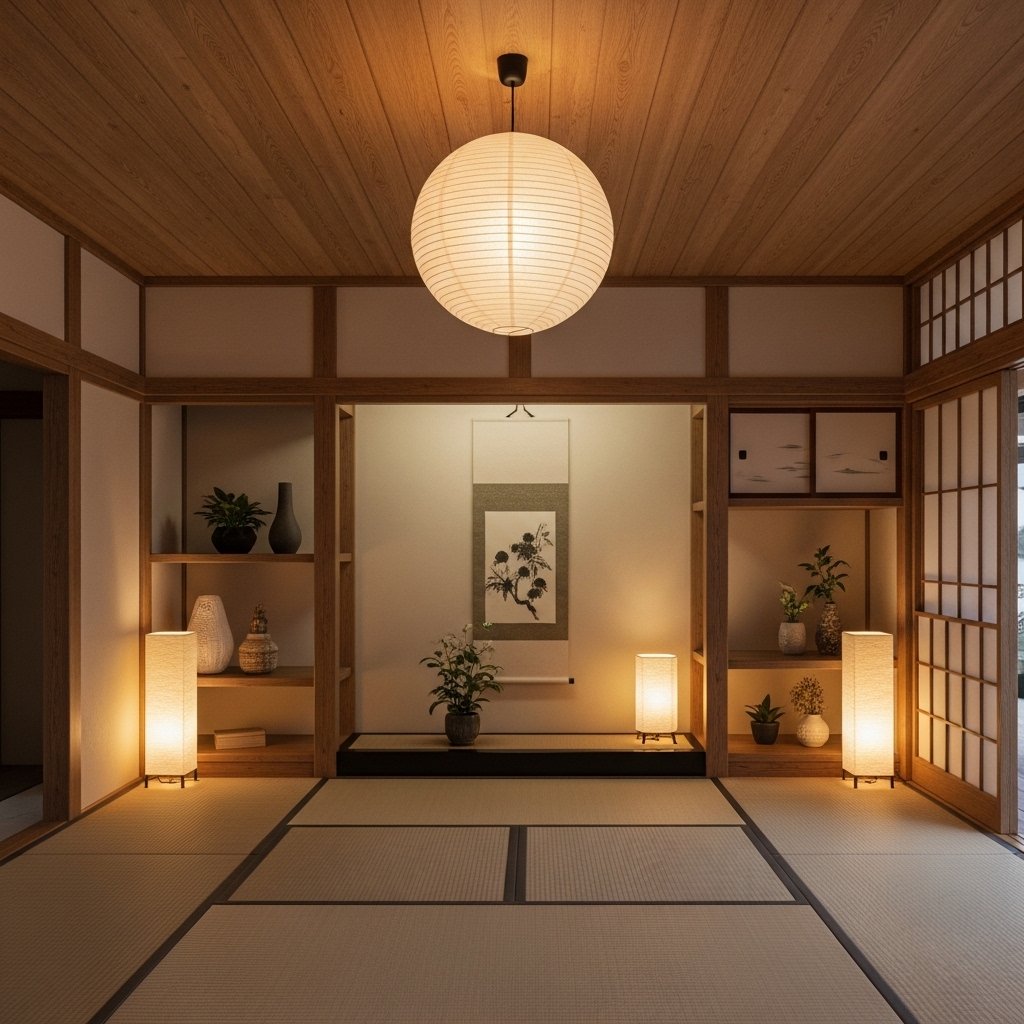 Lighting in a Zen garden interior should always be soft and warm. Harsh white lights are avoided in favor of warm-toned lamps, paper lanterns, or indirect lighting. Natural sunlight is also encouraged as much as possible during the day. Soft lighting helps create a peaceful mood and reduces eye strain. At night, dim lighting enhances relaxation and supports a restful environment.